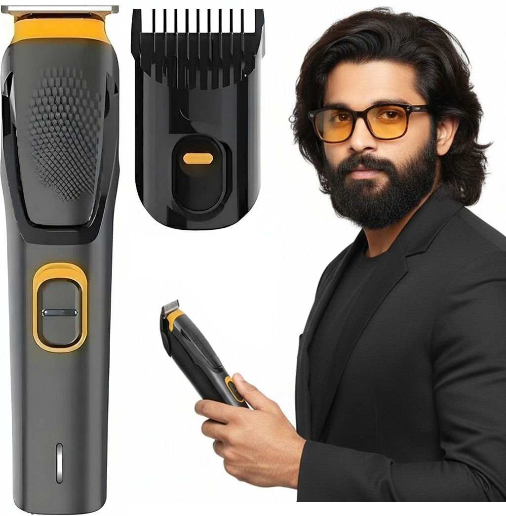 RACCOON AT-509 Cordless Professional Hair Trimmer Titanium coated blade Waterproof S01 Trimmer 90 min Runtime 5 Length Settings (Yellow, Black):-